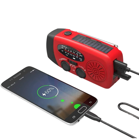 Vevradion - USB, Mobilladdning. Jag rekommenderar starkt! Plasten är av hög kvalitet och robust. Alla funktioner fungerar bra och larmet är högt med en blinkande SOS-ficklampa. Dessutom laddar den telefonen snabbt.